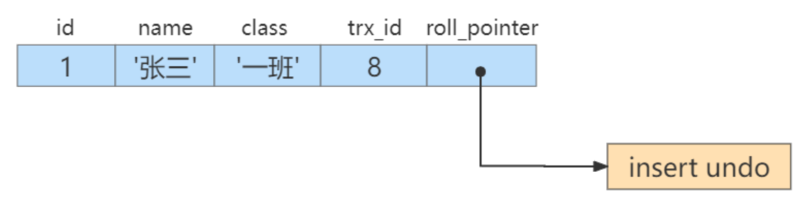 假设现在student表中只有一条由事务id为8的事务插入的一条记录: