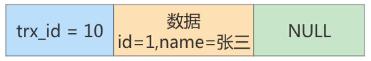 假设现在表student中只有一条数据,数据内容中,主键id=1,隐藏的trx_id=10,它的undo log如下图所示。