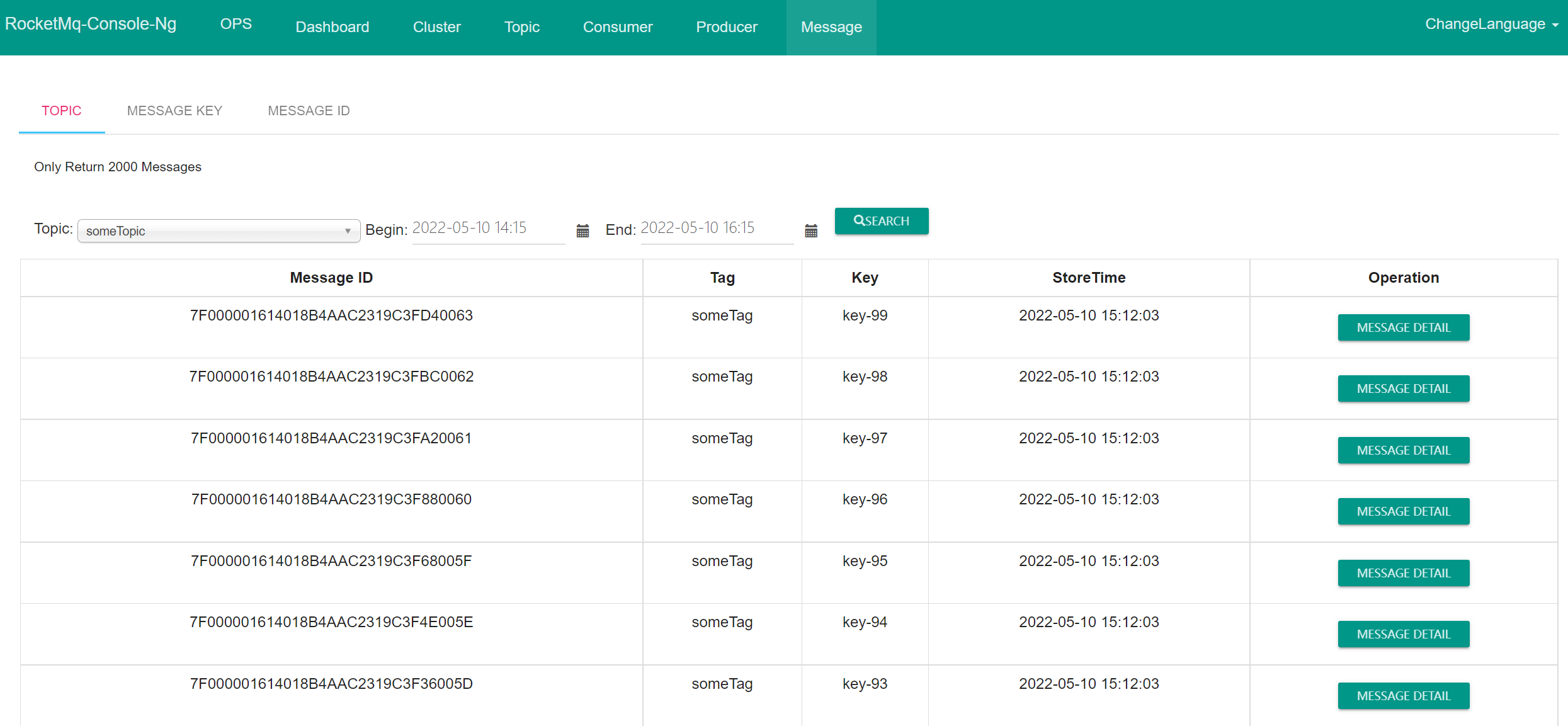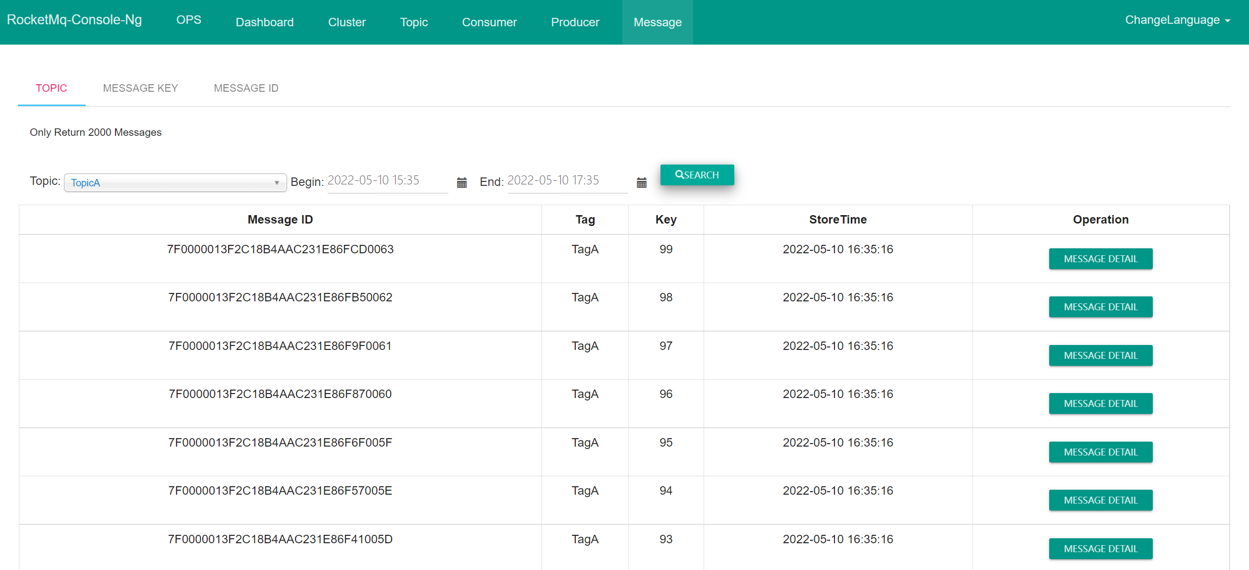 - offsetMsgId:由broker端生成,其生成规则为:brokerIp + 物理分区的offset(Queue中的偏移量)。