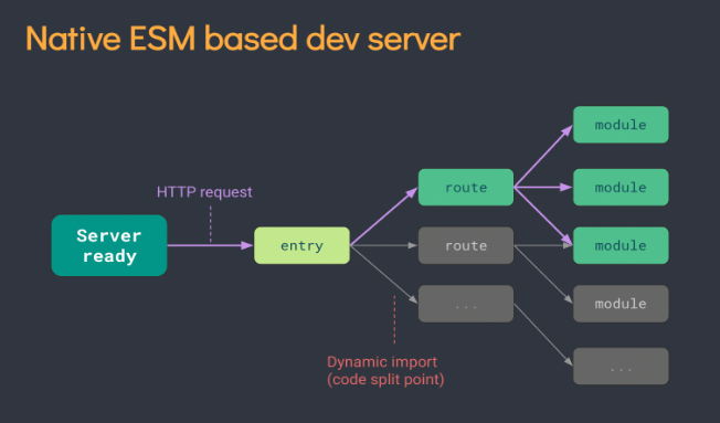- 开发环境中,无需打包操作,可快速的冷启动。