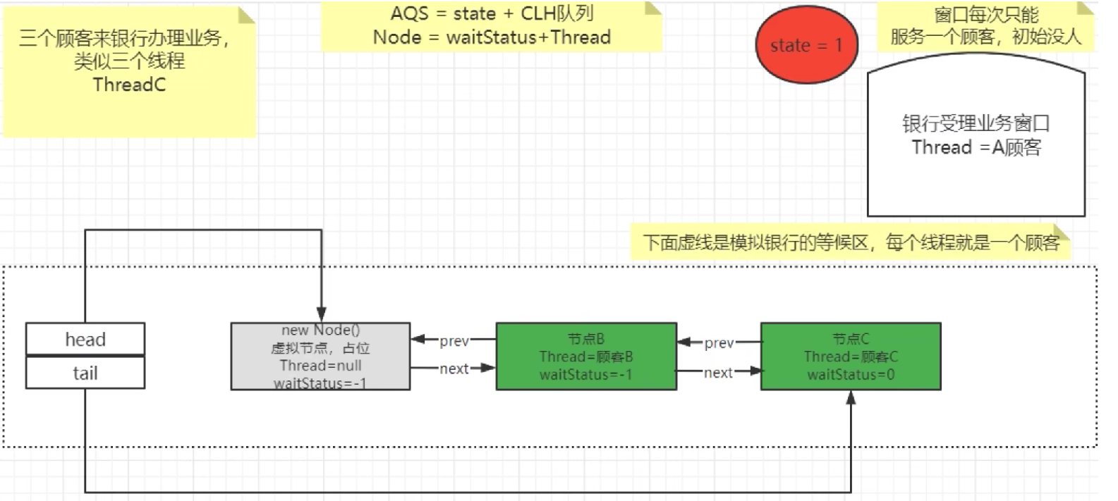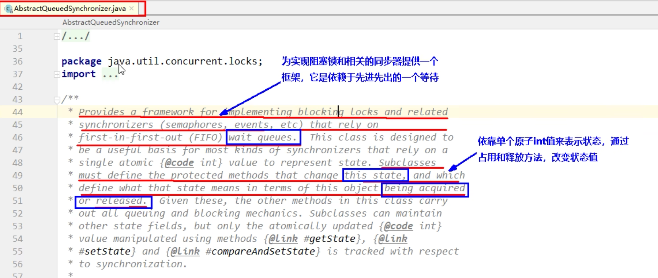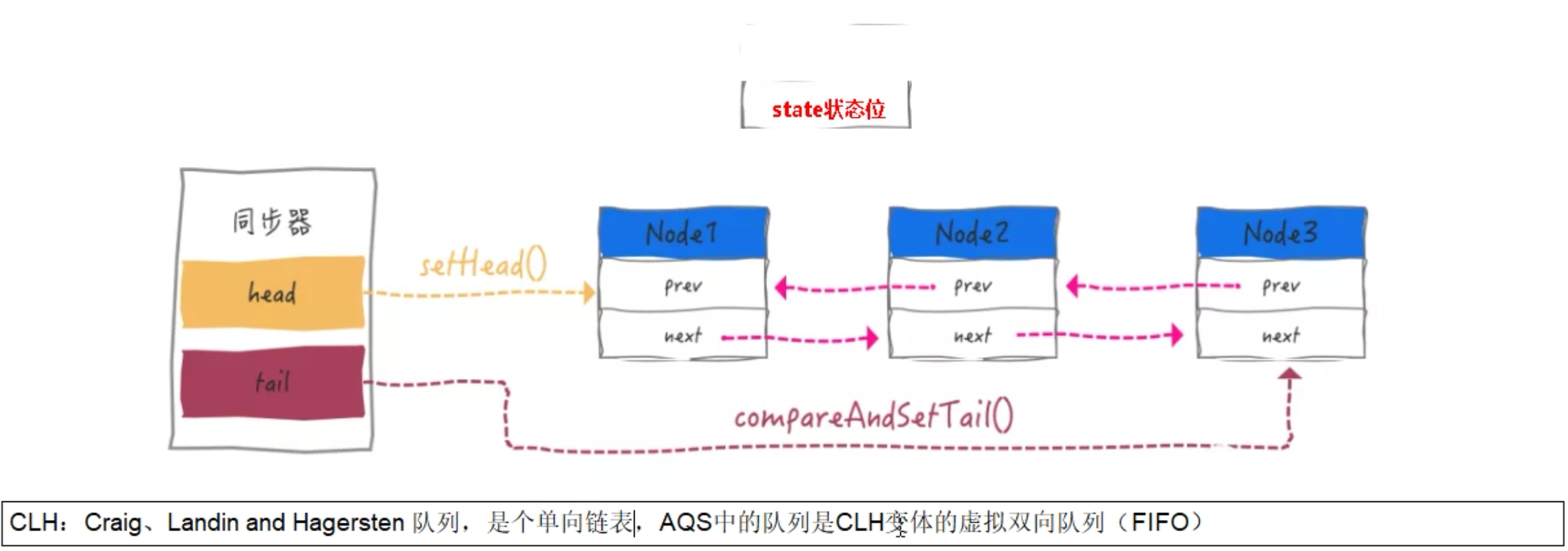 AQS使用一个volatile的int类型的成员变量来表示同步状态,通过内置的FIFO队列来完成资源获取的排队工作将每条要去抢占资源的线程封装成一个Node节点来实现锁的分配,通过CAS完成对State值的修改。