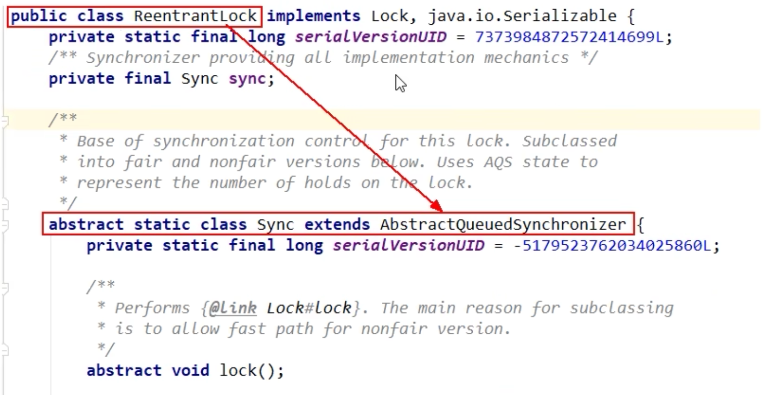 12.3 整体就是一个抽象的FIFO队列来完成资源获取线程的排队工作,并通过一个int类变量表示持有锁的状态