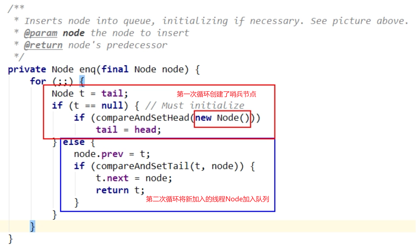如果共享资源被占用,就需要一定的阻塞等待唤醒机制来保证锁分配。这个机制主要用的是CLH队列的变体实现的,将暂时获取不到锁的线程加入到队列中,这个队列就是AQS同步队列的抽象表现。它将要请求共享资源的线程及自身的等待状态封装成队列的结点对象(Node),通过CAS、自旋以及LockSupport.park()的方式,维护state变量的状态,使并发达到同步的效果。