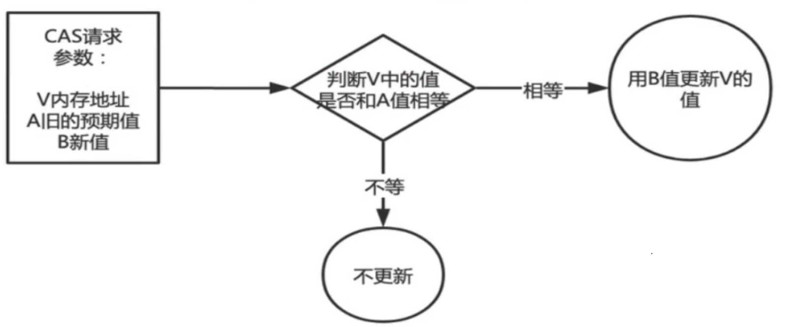 - 核心思想就是:比较要更新变量的值V和预期值E(compare),相等才会将V的值设为新值N(swap)如果不相等自旋再来。
