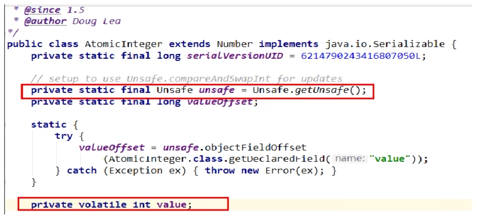 变量valueOffset,表示该变量值在内存中的偏移地址,因为Unsafe就是根据内存偏移地址获取数据的。