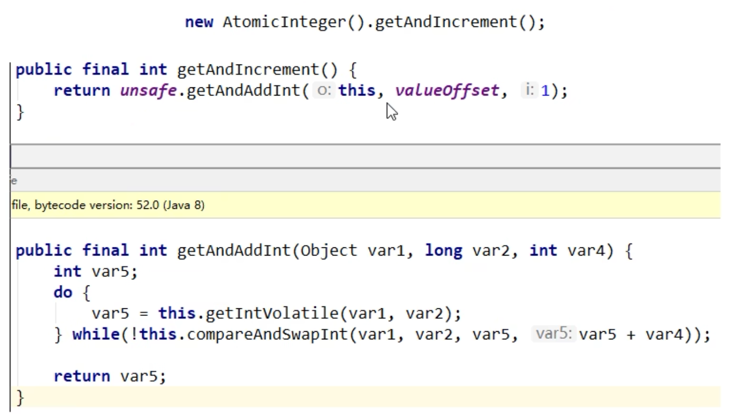 我们可以看到getAndAddlnt方法执行时,有个do while。