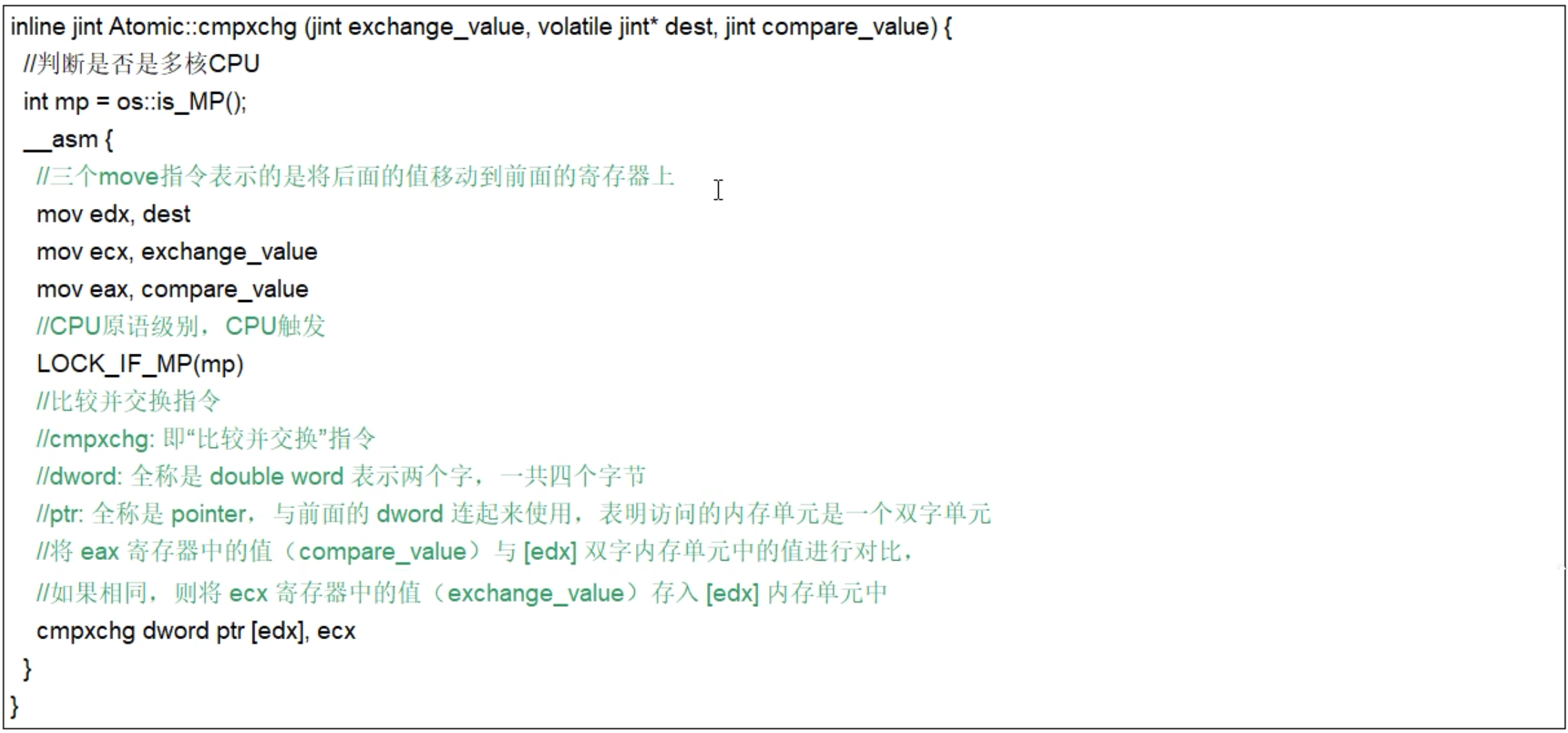 - 它包含三个操作数——内存位置、预期原值及更新值。