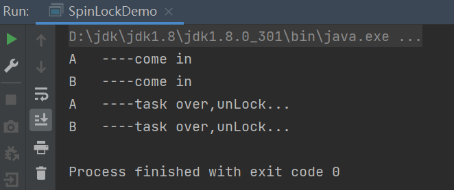 1 | public class SpinLockDemo { |