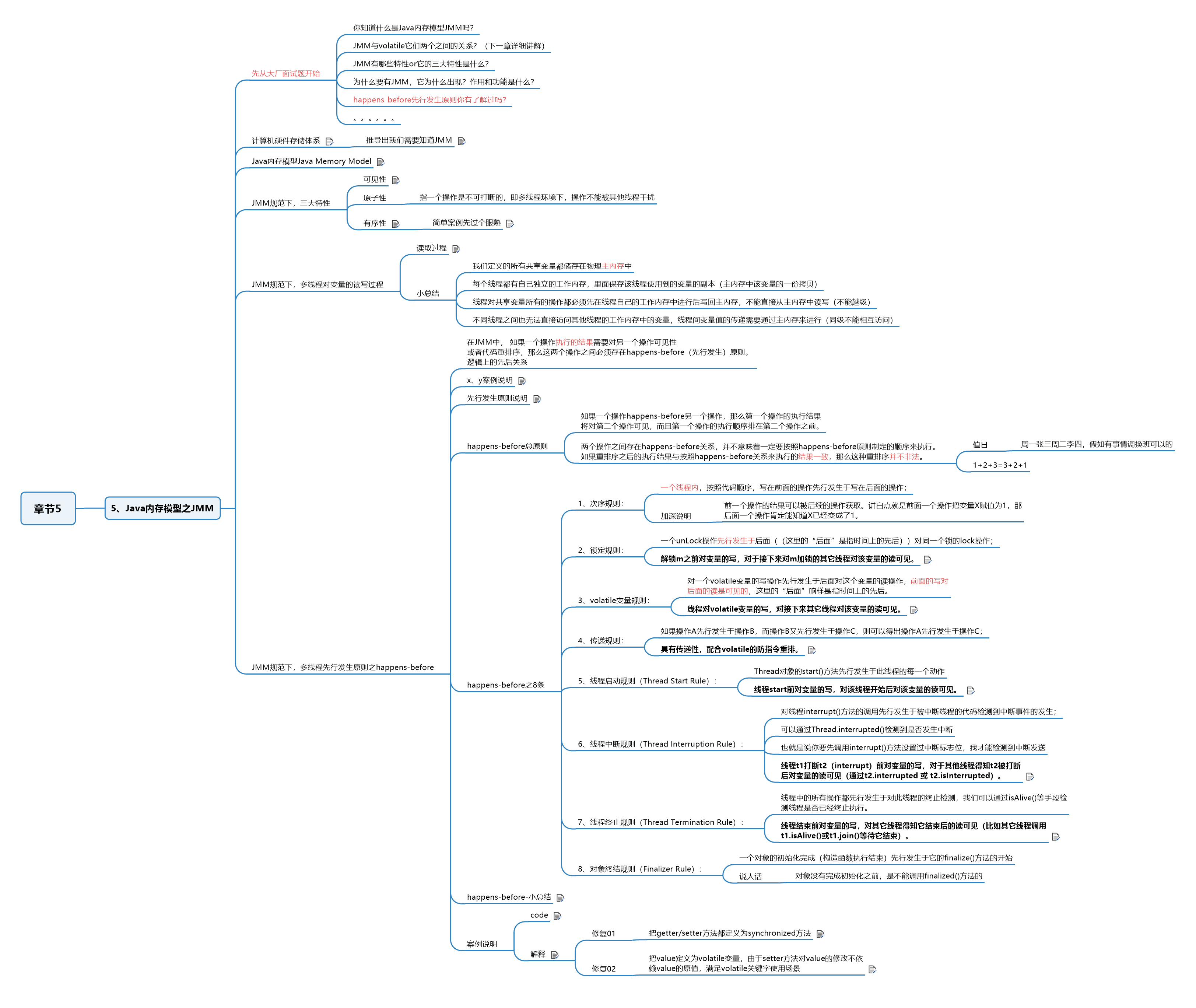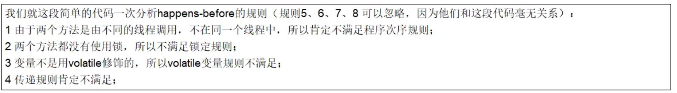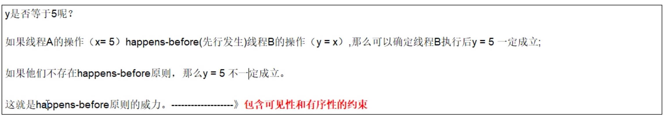 happens-before规定了对共享变量的写操作对其它线程的读操作可见,它是可见性与有序性的一套规则总结,抛开以下happens-before规则,JMM并不能保证一个线程对共享变量的写,对于其它线程对该共享变量的可见。