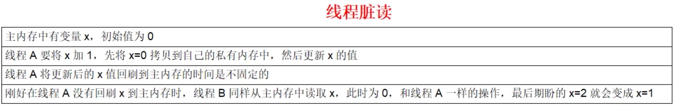 系统主内存共享变量数据修改被写入的时机是不确定的,多线程并发下很可能出现“脏读”,所以每个线程都有自己的工作内存,线程自己的工作内存中保存了该线程使用到的变量的主内存副本拷贝,线程对变量的所有操作(读取,赋值等)都必需在线程自己的工作内存中进行,而不能够直接读写主内存中的变量。不同线程之间也无法直接访问对方工作内存中的变量,线程间变量值的传递均需要通过主内存来完成。