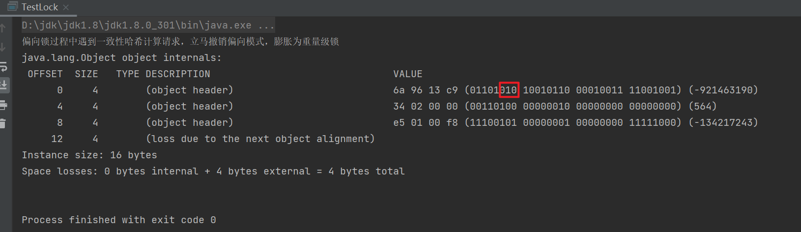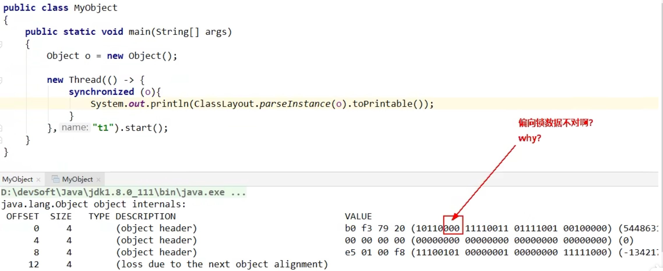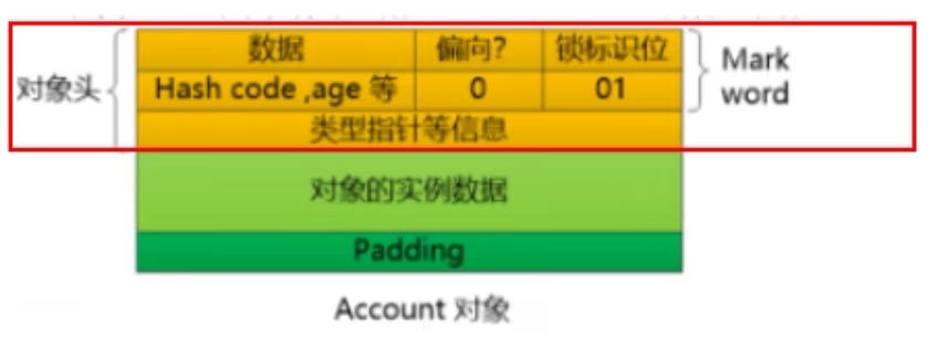 偏向锁的操作不用直接捅到操作系统,不涉及用户到内核转换,不必要直接升级为最高级,我们以一个account对象的“对象头”为例。