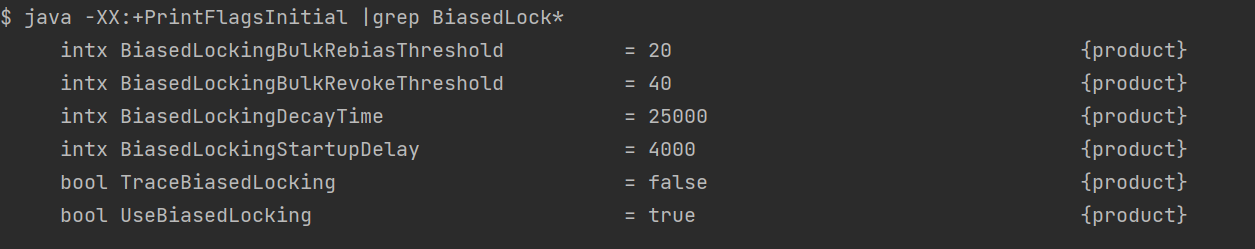 11.10.5.1 java -XX:+PrintFlagsInitial |grep BiasedLock*