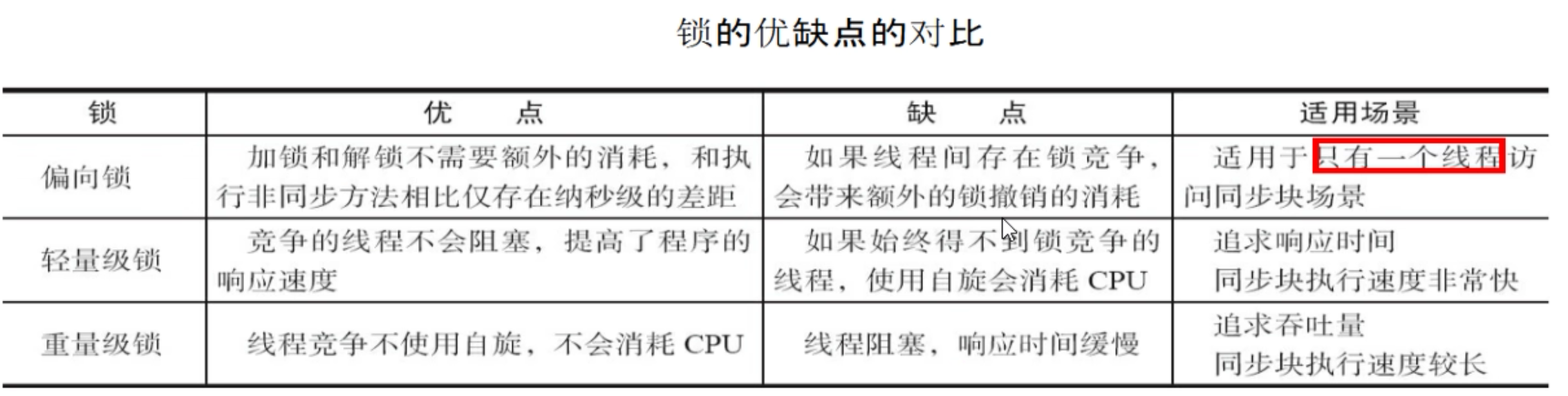 - 多线程的情况下,锁不仅不存在多线程竞争,还存在锁由同一个线程多次获得的情况,偏向锁就是在这种情况下出现的,它的出现是为了解决只有在一个线程执行同步时提高性能。