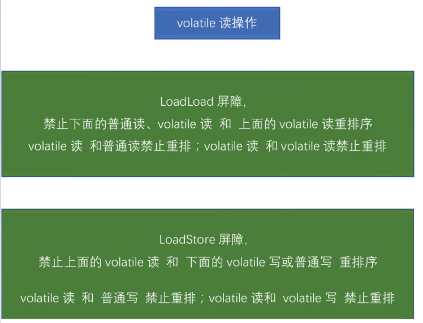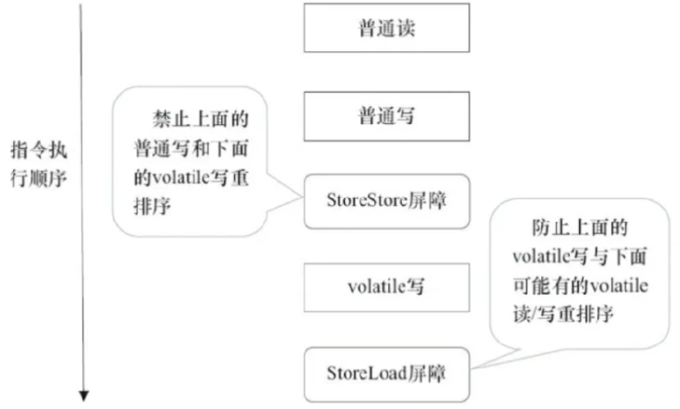 内存屏障(也称内存栅栏,屏障指令等,是一类同步屏障指令,是CPU或编译器在对内存随机访问的操作中的一个同步点,使得此点之前的所有读写操作都执行后才可以开始执行此点之后的操作),避免代码重排序。内存屏障其实就是一种JVM指令,Java内存模型的重排规则会要求Java编峰器在生成JVM指令时插入特定的内存屏障指令,通过这些内存屏障指令,volatile实现了Java内存模型中的可见性和有序性(禁重排),但volatile无法保证原子性。