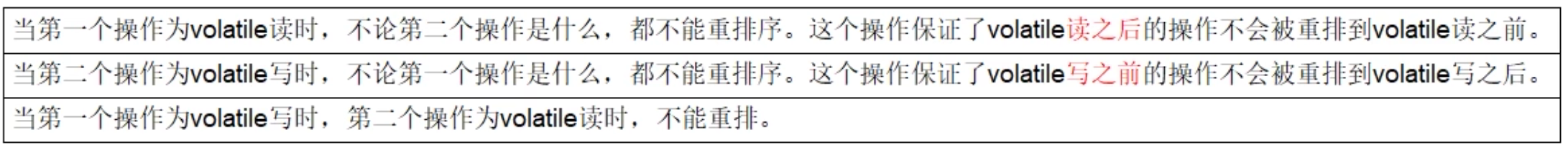 对于编译器的重排序,JMM会根据重排序的规则,禁止特定类型的编译器重排序。
