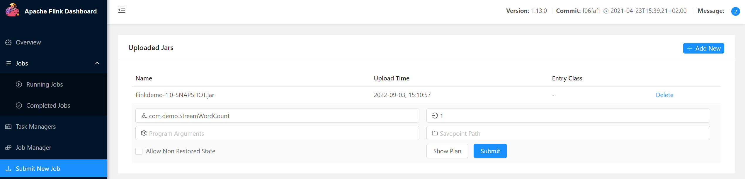 bin/flink run –p 2 –c com.demo.StreamWordCount ./flinkdemo-1.0-SNAPSHOT.jar
