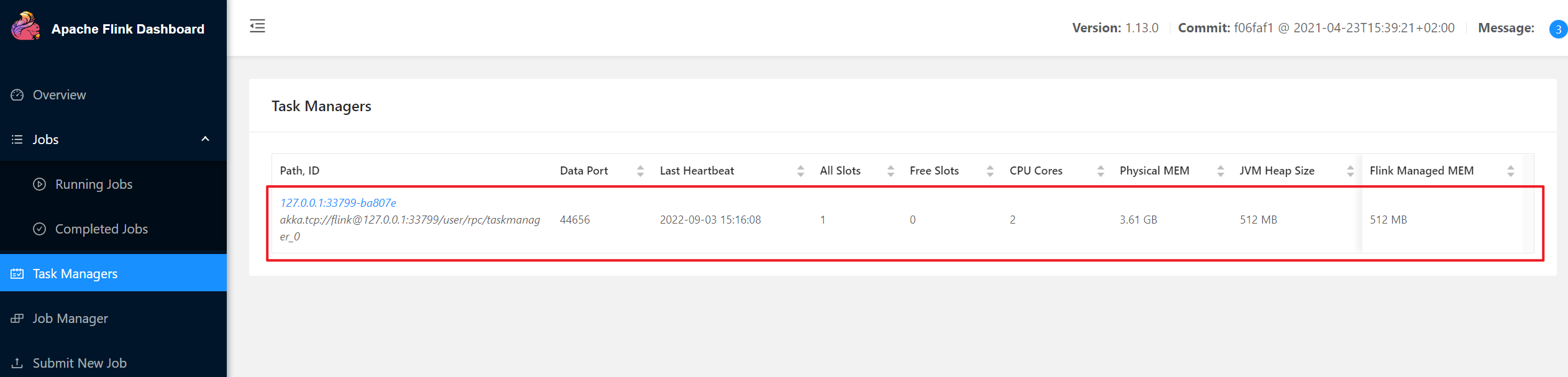 如果我们没有任何并行度设置,而配置文件中默认parallelism.default=1,那么程序运行的默认并行度为1,总共有3个任务。由于不同算子的任务可以共享任务槽,所以最终占用的slot只有1个。9个slot只用了1个,有8个空闲,如图所示。