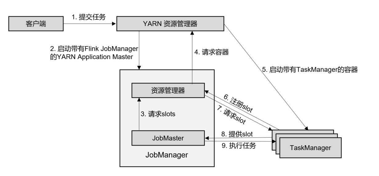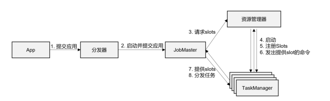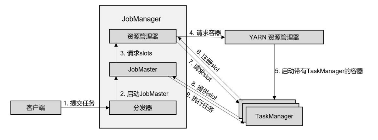 - JobMaster生成执行图后,会将它分发给TaskManager;各个TaskManager会根据执行图部署任务,最终的物理执行过程也会形成一张“图”,一般就叫作物理图(Physical Graph)。这只是具体执行层面的图,并不是一个具体的数据结构。