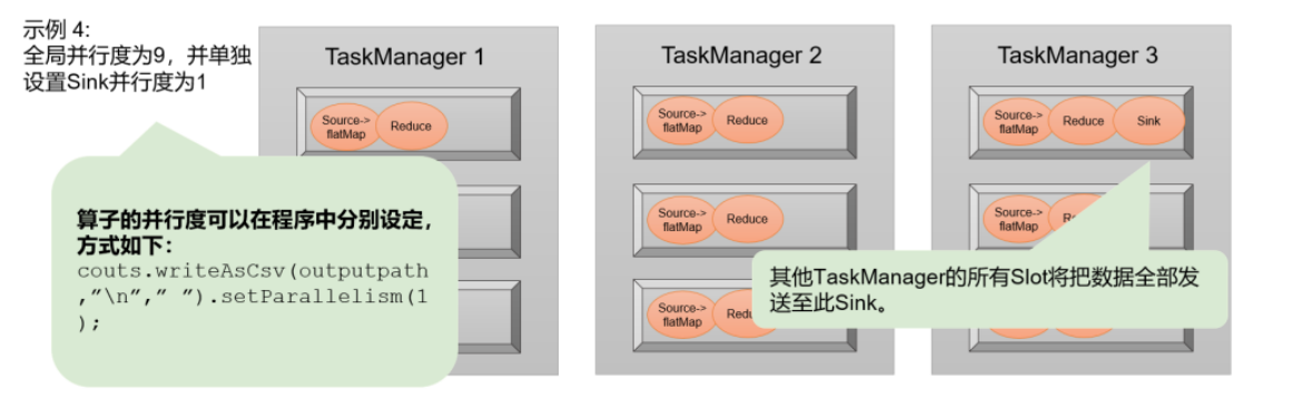 - 如果代码中完全没有设置,那么采用提交时-p参数指定的并行度。