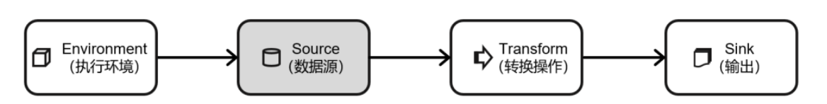 创建环境之后,就可以构建数据处理的业务逻辑了,如图所示,本节将主要讲解Flink的源算子(Source)。想要处理数据,先得有数据,所以首要任务就是把数据读进来。