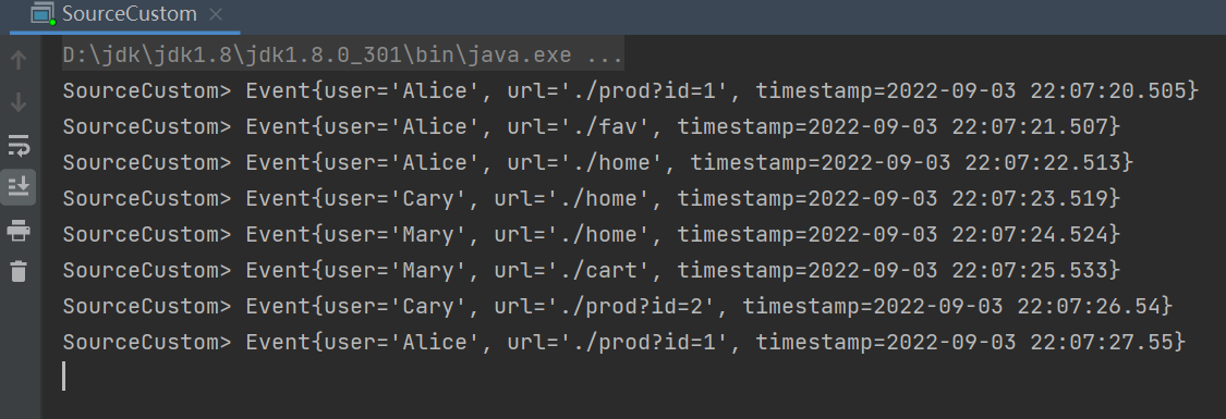 Flink可以从各种来源获取数据,然后构建DataStream进行转换处理。一般将数据的输入来源称为数据源(data source),而读取数据的算子就是源算子(source operator)。所以,source就是我们整个处理程序的输入端。Flink代码中通用的添加source的方式,是调用执行环境的addSource()方法: