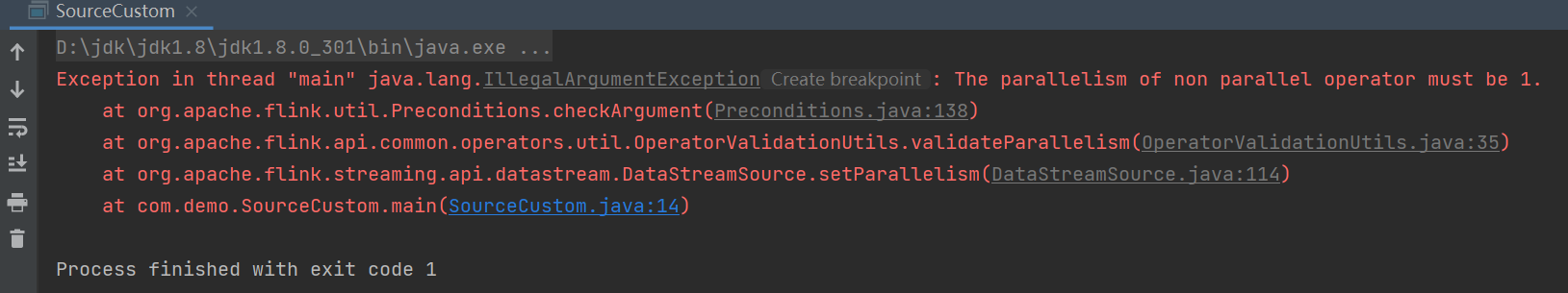 方法传入一个对象参数,需要实现SourceFunction接口;返回DataStreamSource。这里的 DataStreamSource类继承自SingleOutputStreamOperator类,又进一步继承自DataStream。所以很明显,读取数据的source操作是一个算子,得到的是一个数据流(DataStream)。