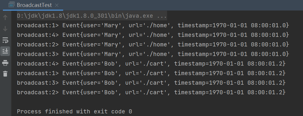 需要注意的是,写完输出(sink)操作并不代表程序已经结束。因为当main()方法被调用时,其实只是定义了作业的每个执行操作,然后添加到数据流图中;这时并没有真正处理数据——因为数据可能还没来。Flink是由事件驱动的,只有等到数据到来,才会触发真正的计算,这也被称为“延迟执行”或“懒执行”(lazy execution)。