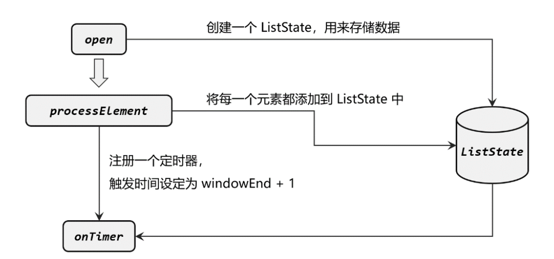 - 用于定义定时触发的操作,这是一个非常强大、也非常有趣的功能。这个方法只有在注册好的定时器触发的时候才会调用,而定时器是通过“定时服务”TimerService来注册的。打个比方,注册定时器(timer)就是设了一个闹钟,到了设定时间就会响;而.onTimer()中定义的,就是闹钟响的时候要做的事。所以它本质上是一个基于时间的“回调”(callback)方法,通过时间的进展来触发;在事件时间语义下就是由水位线(watermark)来触发了。
