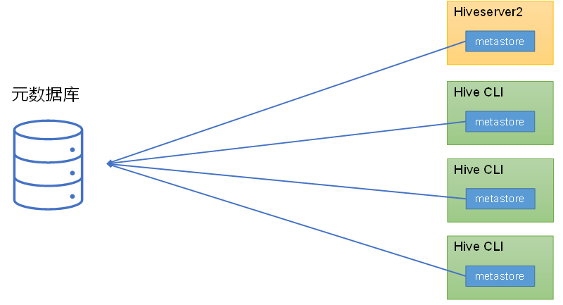 - 默认存储在自带的derby数据库中,由于derby数据库只支持单客户端访问,生产环境中为了多人开发,推荐使用MySQL存储Metastore。