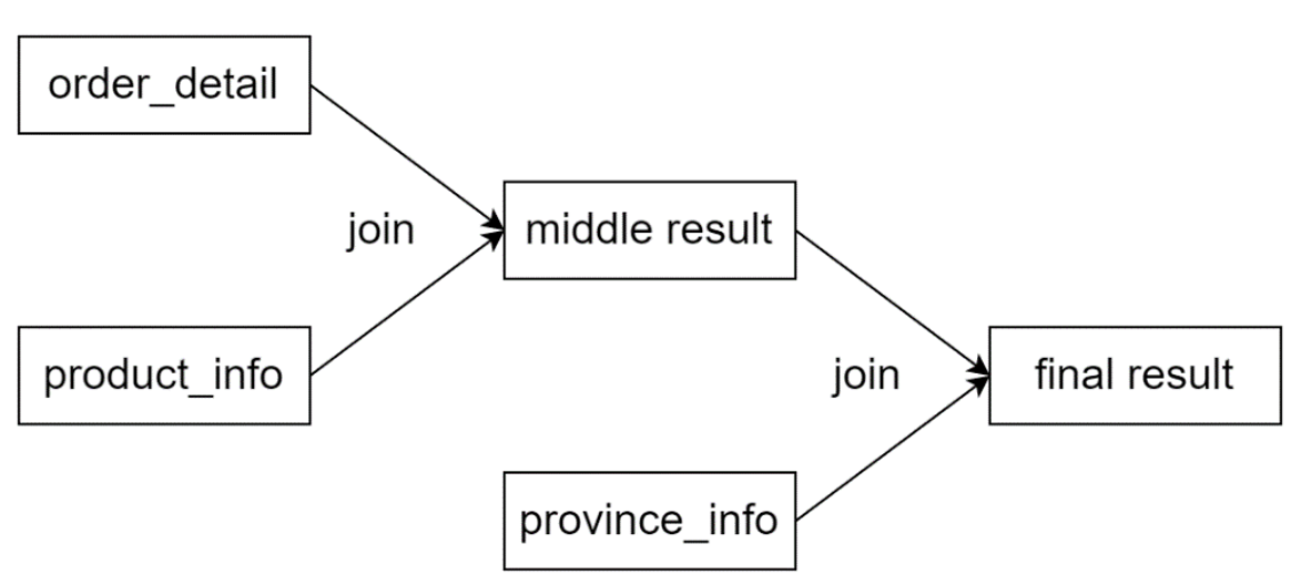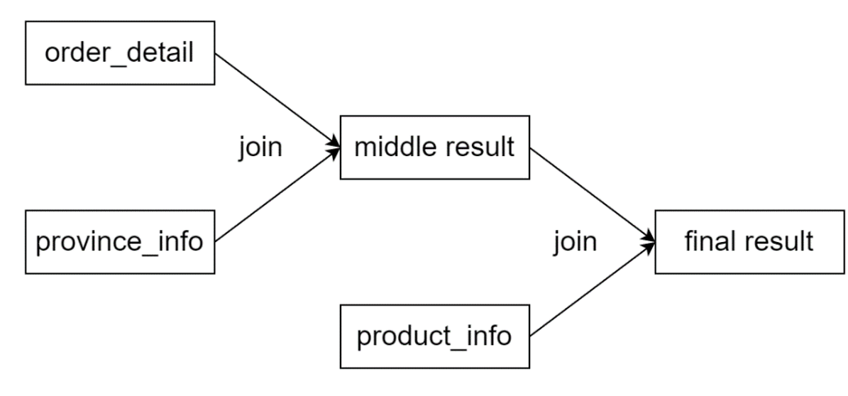 - 根据上述案例可以看出,CBO优化对于执行计划中join顺序是有影响的,其之所以会将province_info的join顺序提前,是因为province info的数据量较小,将其提前,会有更大的概率使得中间结果的数据量变小,从而使整个计算任务的数据量减小,也就是使计算成本变小。