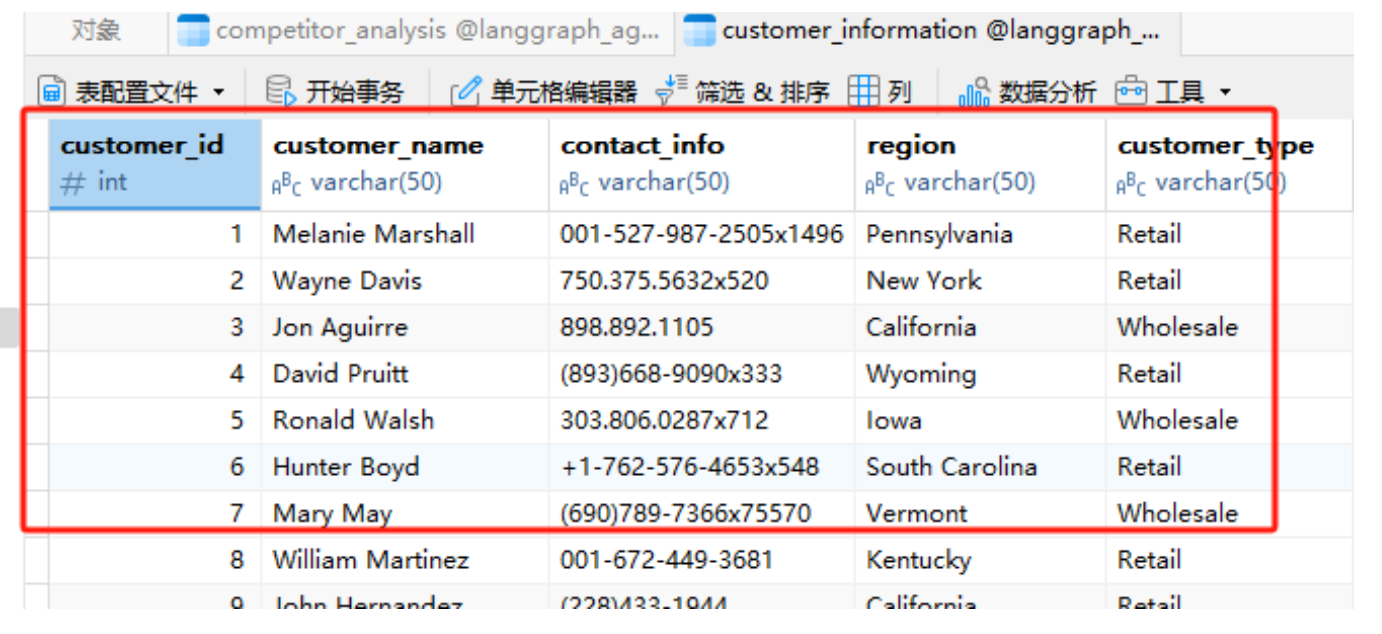{'messages': [HumanMessage(content='根据sales_id使用折线图显示前5名销售的销售总额', additional_kwargs={}, response_metadata={}), AIMessage(content='', additional_kwargs={'tool_calls': [{'id': 'call_6bAhCyRVEjGzzhwX9zNWstwN', 'function': {'arguments': '{"sales_id":1}', 'name': 'query_sales'}, 'type': 'function'}], 'refusal': None}, response_metadata={'token_usage': {'completion_tokens': 15, 'prompt_tokens': 289, 'total_tokens': 304, 'completion_tokens_details': {'accepted_prediction_tokens': 0, 'audio_tokens': 0, 'reasoning_tokens': 0, 'rejected_prediction_tokens': 0}, 'prompt_tokens_details': {'audio_tokens': 0, 'cached_tokens': 0}}, 'model_name': 'gpt-4o-mini-2024-07-18', 'system_fingerprint': 'fp_0ba0d124f1', 'finish_reason': 'tool_calls', 'logprobs': None}, name='db_manager', id='run-1f0240b2-685f-4a98-8560-ab3af10d6ff8-0', tool_calls=[{'name': 'query_sales', 'args': {'sales_id': 1}, 'id': 'call_6bAhCyRVEjGzzhwX9zNWstwN', 'type': 'tool_call'}], usage_metadata={'input_tokens': 289, 'output_tokens': 15, 'total_tokens': 304, 'input_token_details': {'audio': 0, 'cache_read': 0}, 'output_token_details': {'audio': 0, 'reasoning': 0}}), ToolMessage(content='{"sales_id": 1, "product_id": 18, "employee_id": 2, "customer_id": 38, "sale_date": "2024-05-18", "quantity": 6, "amount": 1193.36, "discount": 0.00735418}', name='query_sales', tool_call_id='call_6bAhCyRVEjGzzhwX9zNWstwN'), AIMessage(content='', additional_kwargs={'tool_calls': [{'id': 'call_5YrNGeiscbbgVFo7SrVNXH1f', 'function': {'arguments': '{"sales_id": 2}', 'name': 'query_sales'}, 'type': 'function'}, {'id': 'call_4WuNHVDKcsRkd6Z1NSEZIXyi', 'function': {'arguments': '{"sales_id": 3}', 'name': 'query_sales'}, 'type': 'function'}, {'id': 'call_fKuNAUgGYzaVY8sdcl89Wyeg', 'function': {'arguments': '{"sales_id": 4}', 'name': 'query_sales'}, 'type': 'function'}, {'id': 'call_lKJRJougLHCgiWvyRQAxrGUb', 'function': {'arguments': '{"sales_id": 5}', 'name': 'query_sales'}, 'type': 'function'}], 'refusal': None}, response_metadata={'token_usage': {'completion_tokens': 76, 'prompt_tokens': 380, 'total_tokens': 456, 'completion_tokens_details': {'accepted_prediction_tokens': 0, 'audio_tokens': 0, 'reasoning_tokens': 0, 'rejected_prediction_tokens': 0}, 'prompt_tokens_details': {'audio_tokens': 0, 'cached_tokens': 0}}, 'model_name': 'gpt-4o-mini-2024-07-18', 'system_fingerprint': 'fp_0ba0d124f1', 'finish_reason': 'tool_calls', 'logprobs': None}, name='db_manager', id='run-f9974e83-6e55-442d-9adb-51ebf7a6ec43-0', tool_calls=[{'name': 'query_sales', 'args': {'sales_id': 2}, 'id': 'call_5YrNGeiscbbgVFo7SrVNXH1f', 'type': 'tool_call'}, {'name': 'query_sales', 'args': {'sales_id': 3}, 'id': 'call_4WuNHVDKcsRkd6Z1NSEZIXyi', 'type': 'tool_call'}, {'name': 'query_sales', 'args': {'sales_id': 4}, 'id': 'call_fKuNAUgGYzaVY8sdcl89Wyeg', 'type': 'tool_call'}, {'name': 'query_sales', 'args': {'sales_id': 5}, 'id': 'call_lKJRJougLHCgiWvyRQAxrGUb', 'type': 'tool_call'}], usage_metadata={'input_tokens': 380, 'output_tokens': 76, 'total_tokens': 456, 'input_token_details': {'audio': 0, 'cache_read': 0}, 'output_token_details': {'audio': 0, 'reasoning': 0}}), ToolMessage(content='{"sales_id": 2, "product_id": 13, "employee_id": 5, "customer_id": 2, "sale_date": "2023-11-16", "quantity": 8, "amount": 2315.86, "discount": 0.0620275}', name='query_sales', tool_call_id='call_5YrNGeiscbbgVFo7SrVNXH1f'), ToolMessage(content='{"sales_id": 3, "product_id": 12, "employee_id": 10, "customer_id": 17, "sale_date": "2024-09-14", "quantity": 7, "amount": 808.775, "discount": 0.0783529}', name='query_sales', tool_call_id='call_4WuNHVDKcsRkd6Z1NSEZIXyi'), ToolMessage(content='{"sales_id": 4, "product_id": 9, "employee_id": 7, "customer_id": 11, "sale_date": "2024-08-01", "quantity": 1, "amount": 3248.92, "discount": 0.00331112}', name='query_sales', tool_call_id='call_fKuNAUgGYzaVY8sdcl89Wyeg'), ToolMessage(content='{"sales_id": 5, "product_id": 11, "employee_id": 8, "customer_id": 8, "sale_date": "2024-11-08", "quantity": 9, "amount": 4020.69, "discount": 0.119492}', name='query_sales', tool_call_id='call_lKJRJougLHCgiWvyRQAxrGUb'), AIMessage(content='我已经获得了前5名销售的销售记录。以下是每个销售的销售总额:\n\n1. Sales ID 1: Amount = 1193.36\n2. Sales ID 2: Amount = 2315.86\n3. Sales ID 3: Amount = 808.775\n4. Sales ID 4: Amount = 3248.92\n5. Sales ID 5: Amount = 4020.69\n\n接下来,我将计算这些销售的总额,并准备数据以生成折线图。 \n\n总额计算如下:\n- 1193.36 + 2315.86 + 808.775 + 3248.92 + 4020.69 = 11687.625\n\n现在,我将准备数据以生成折线图。以下是数据点:\n\n- Sales ID 1: 1193.36\n- Sales ID 2: 2315.86\n- Sales ID 3: 808.775\n- Sales ID 4: 3248.92\n- Sales ID 5: 4020.69\n\n请使用这些数据生成折线图。', additional_kwargs={'refusal': None}, response_metadata={'token_usage': {'completion_tokens': 242, 'prompt_tokens': 728, 'total_tokens': 970, 'completion_tokens_details': {'accepted_prediction_tokens': 0, 'audio_tokens': 0, 'reasoning_tokens': 0, 'rejected_prediction_tokens': 0}, 'prompt_tokens_details': {'audio_tokens': 0, 'cached_tokens': 0}}, 'model_name': 'gpt-4o-mini-2024-07-18', 'system_fingerprint': 'fp_0ba0d124f1', 'finish_reason': 'stop', 'logprobs': None}, name='db_manager', id='run-6933dec1-2efc-43d8-9493-8c502e362f2c-0', usage_metadata={'input_tokens': 728, 'output_tokens': 242, 'total_tokens': 970, 'input_token_details': {'audio': 0, 'cache_read': 0}, 'output_token_details': {'audio': 0, 'reasoning': 0}})], 'sender': 'db_manager'}